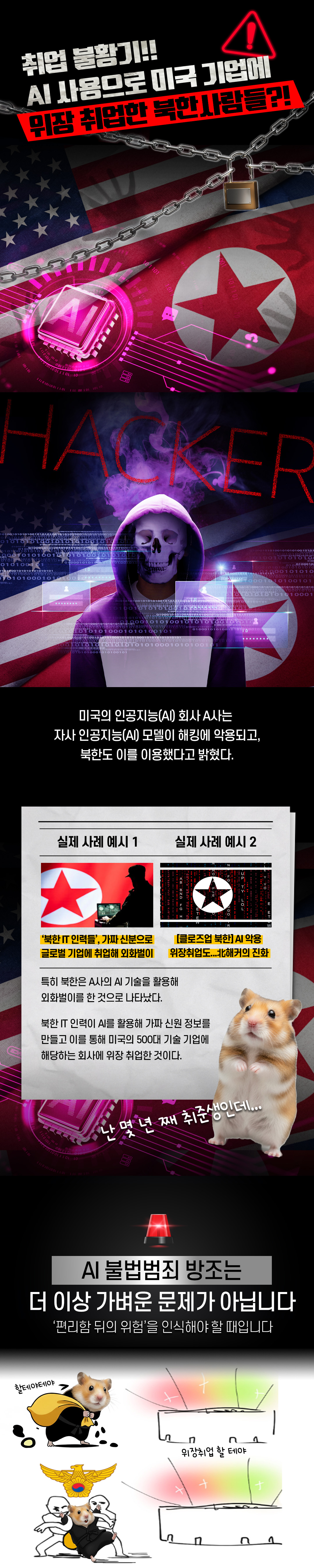 AI 위험성 주의보 Ep.4 AI사용으로 미국기업에 위장 취업한 북한 사람들 2025-11-07 조회수 101 Ep.4 AI사용으로 미국기업에 위장 취업한 북한 사람들 1 Ep.12 AI의 답변이 당신을 해칠 수도 있습니다. 2025-12-01 86 2 Ep.11 AI 역기능 주의보 발령! 2025-11-27 88 3 Ep.10 AI의 편향, 왜 우리를 다르게 보나요? 2025-11-27 30 4 Ep.9 AI가 내 주소랑 이름, 계좌번호를 말하고 다닌다고? 2025-11-21 155 5 Ep.8 AI, 친구가 아닌 도구입니다. 2025-11-21 44 6 Ep.7 이상형과의 운명적 만남? AI 딥페이크 사기입니다 2025-11-17 137 7 Ep.6 100% 자연산? NO! AI가 만든 이미지! 2025-11-17 79 8 Ep.5 Ai 딥페이크 하나로 나락 가버린 내 커리어 어쩔!! 2025-11-07 241 9 Ep.4 AI사용으로 미국기업에 위장 취업한 북한 사람들 2025-11-07 101 10 Ep.3 AI 이용의 함정 : 창작이 아니라 복붙이었다? 2025-10-29 299 11 Ep.2 우리 궁금증을 유발하는 AI가 폭력을 유도 한다고? 2025-10-28 175 12 Ep.1 딥 페이크 여러분은 구분 가능 하십니까? 2025-10-28 146 13 AI는 가끔 사실과 다른 내용을 지어내기도한다 2025-09-02 535 이전 다음